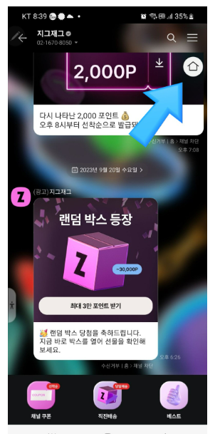 1.일단 광고 채팅창으로 이동하면 우측 상단에 집모양처럼 생긴 것이 있습니다. 그것을 클릭하세요.