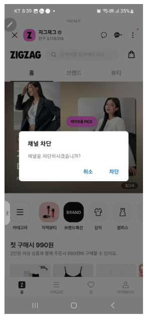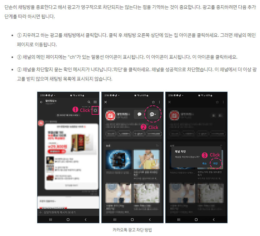 3. Ch를 클릭하면 채널 차단이라는 창을 만나게 되고 <차단>를 클릭하면 해당 광고 채널은 차단하게 됩니다.