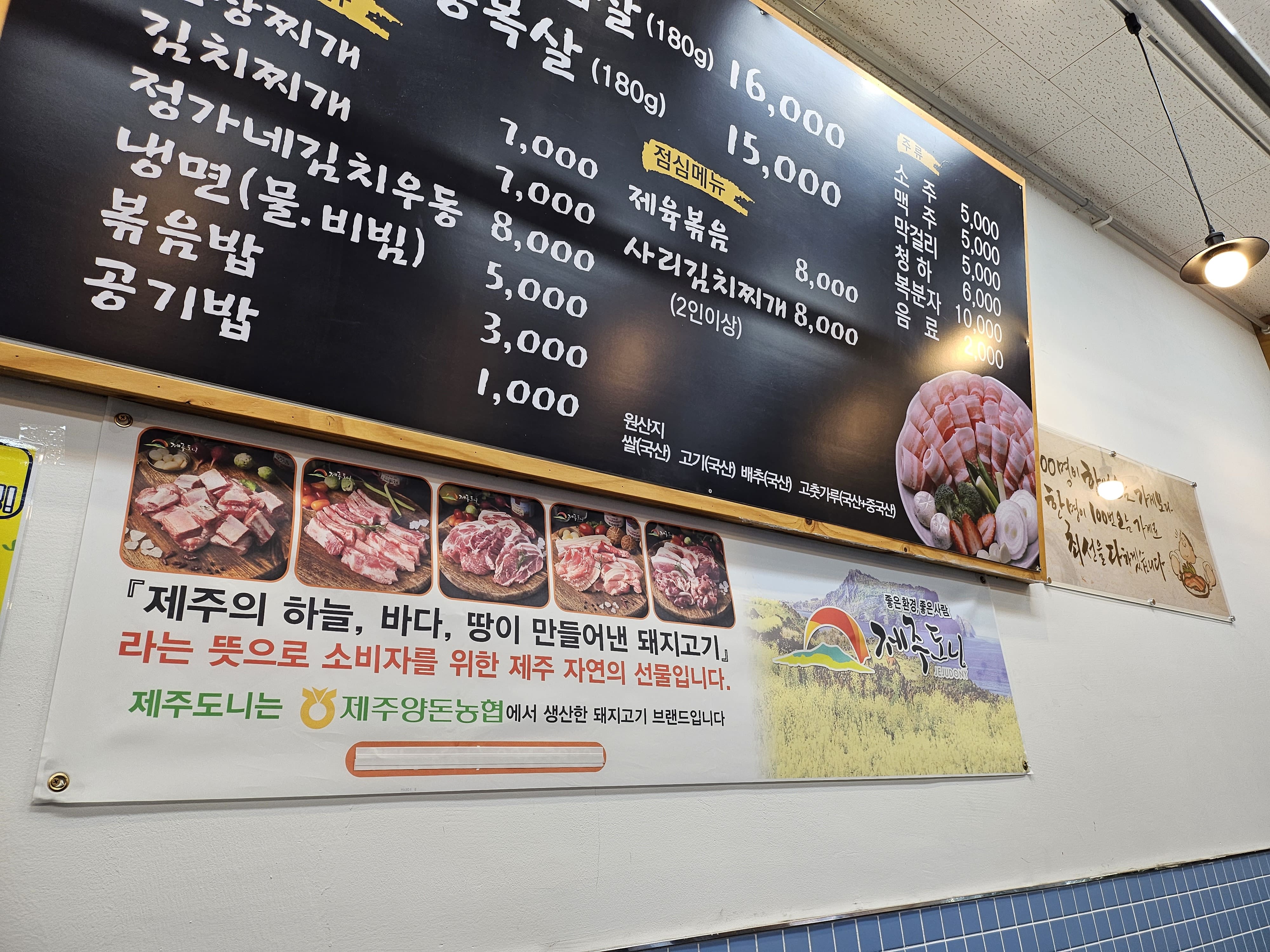 오늘은 문정역에 새로 오픈한 정가네 탐라 냉삼집에 대해 소개하는 글을 작성해 보도록 하겠습니다. 정가네 탐라 냉삼집은 새로 오픈해서 그런지 매장도 상당히 깔끔하고 식기류들도 새것 같아서 좋았습니다. 또한 고기도 신선해 보이고 오픈 이벤트를 진행 중이라 손님도 많았던 것 같습니다. 연말, 연초 모임이 많이 있으실 텐데 소중한 사람들과 함께 방문해서 좋은 고기 맛있는 식사 하시면 좋겠습니다. 일요일은 정기휴무이고, 점심 메뉴도 운영하고 있으니 참고하시면 좋을 것 같습니다 제육볶음도 8,000원으로 저렴하고 좋은 것 같습니다.