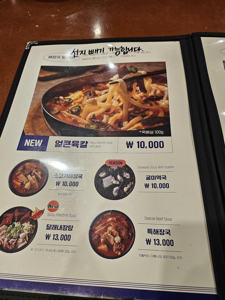 달래해장 메뉴