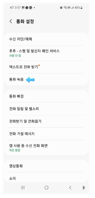 3. 통화 녹음을 클릭합니다.