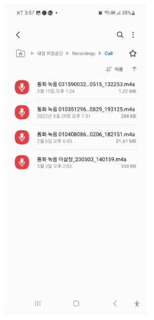 4. 통화 녹음된 파일을 찾을 수 있습니다.