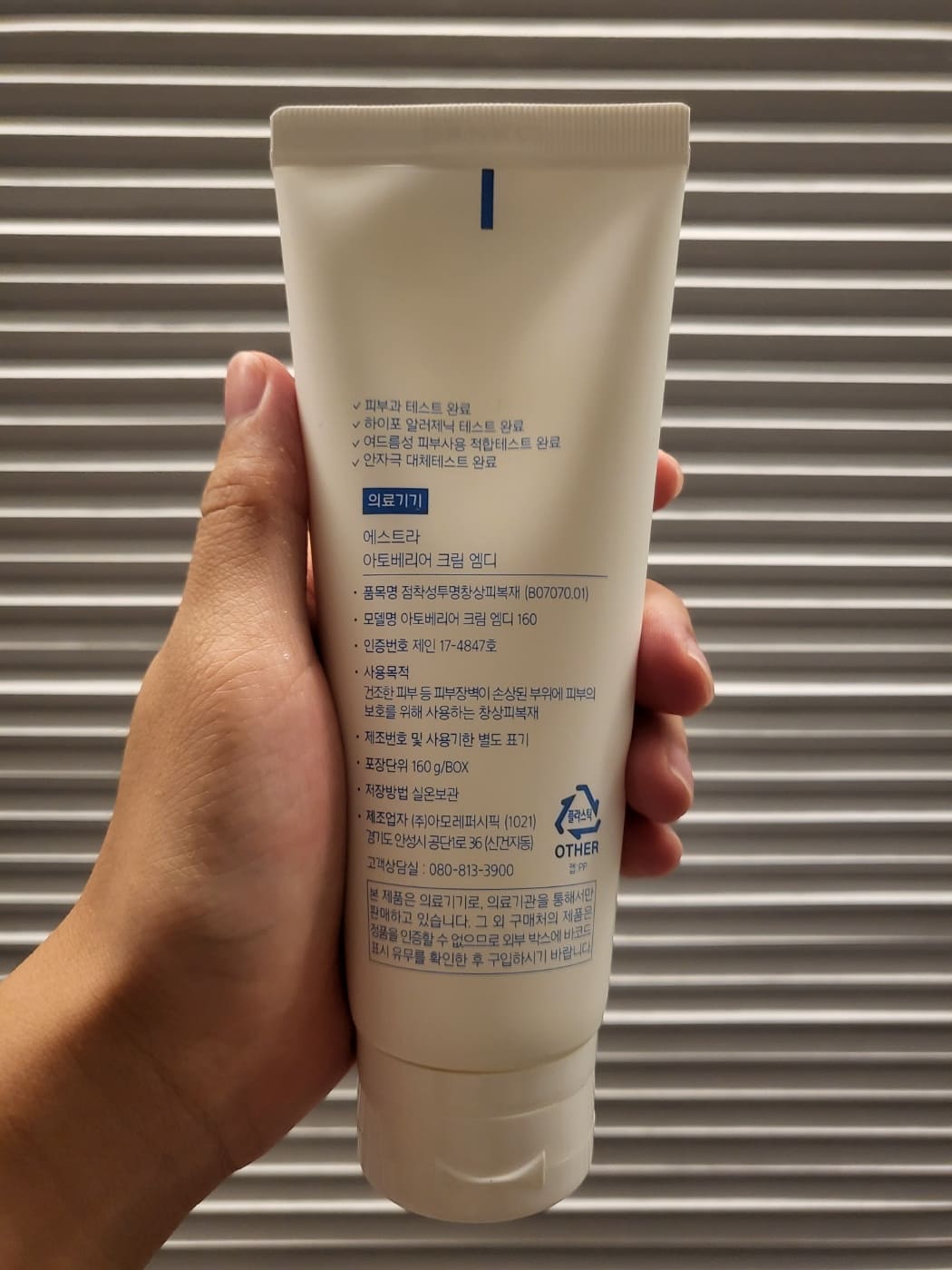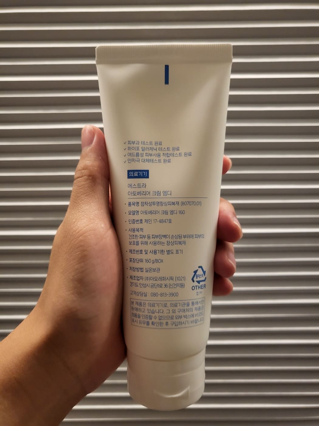 의료기기 전용설비 생산시설에서 만든 제품이며, 소아과 테스트 및 피부과 테스트도 완료한 제품입니다.