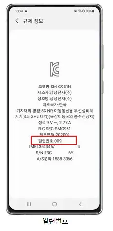◆ 규제 정보 -모델명, 제조자, 상호명, 제조국가, 기자재의 명칭, 정격, 제조연월, 일련번호, IMEI, S/N, SPEN 모델명, SPEN 인증번호, A/S문의전화 등을 알 수 있습니다.