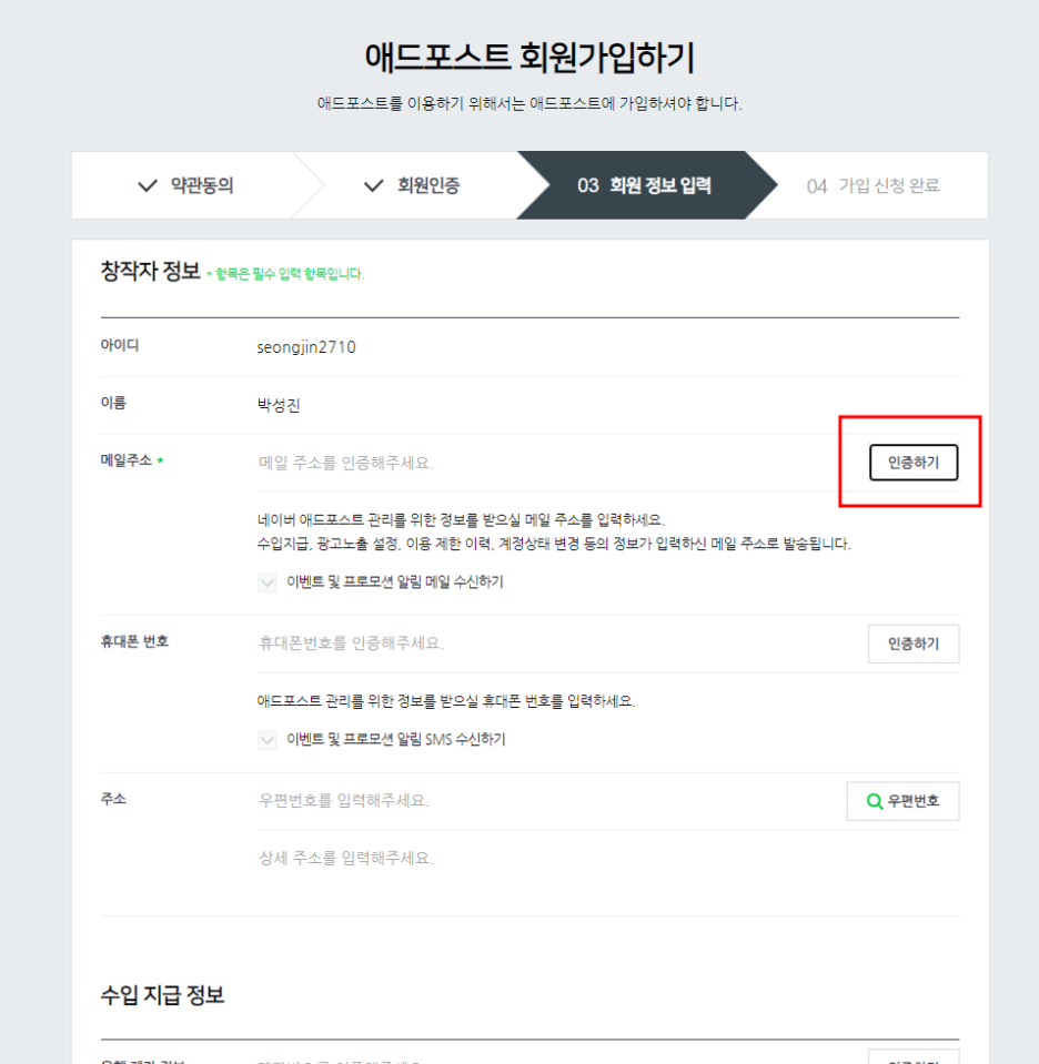 • 광고 수익이 발생하면 등록한 계좌로 지급됩니다.