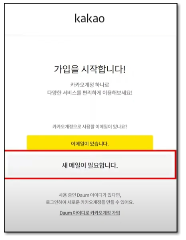새 메일 생성 단계가 진행되는데, 화면에서 '새 메일이 필요합니다' 버튼을 선택하시면 됩니다.