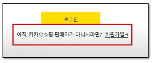 사이트에서 '가입하기' 버튼을 클릭하고, 카카오 쇼핑 판매자 센터 사이트가 열리면 로그인 버튼 아래에 위치한 '회원가입' 버튼을 선택하십시오. 이제 카카오톡 판매자센터 입점 프로세스를 확인하시면 됩니다.
