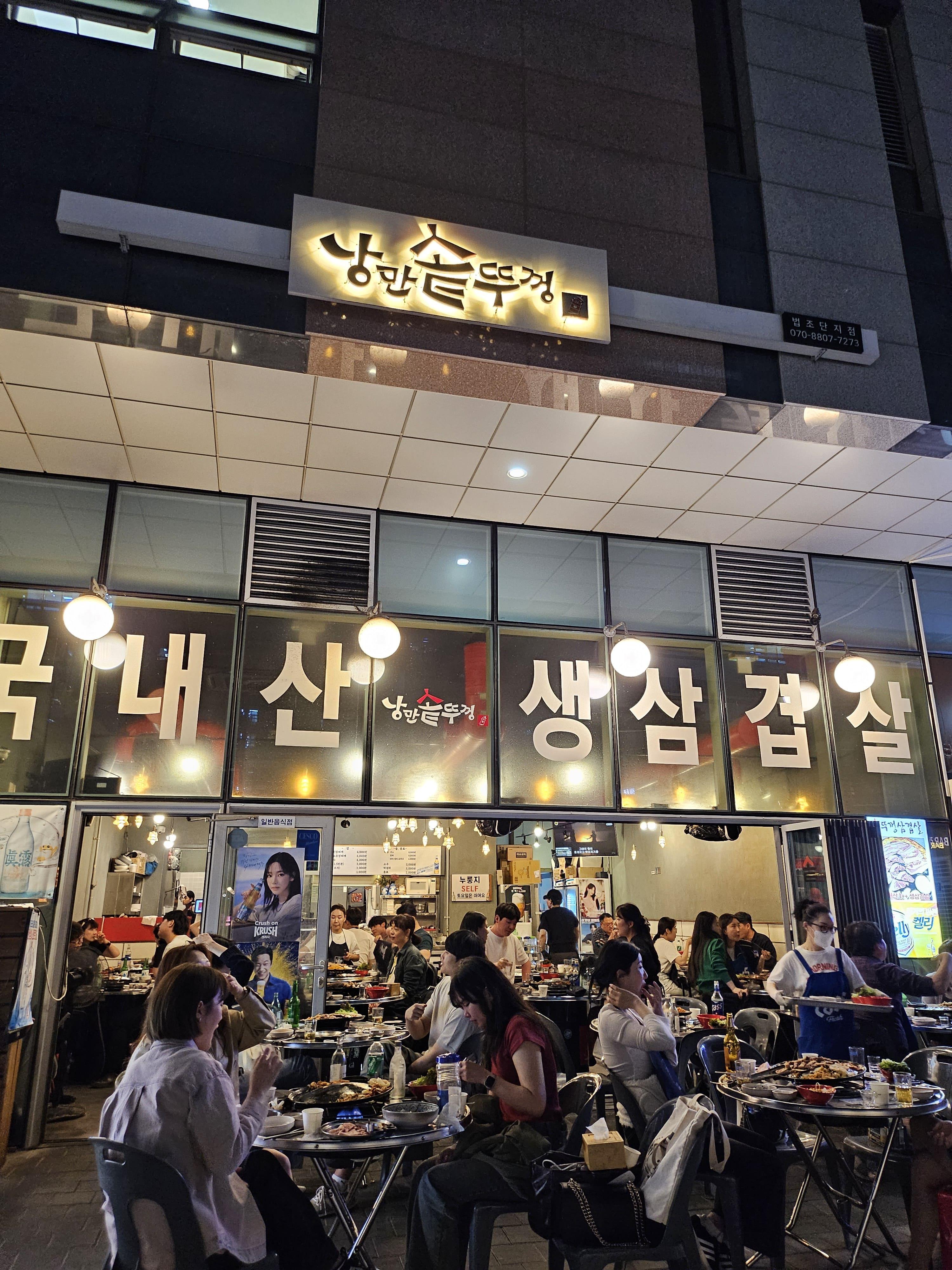 안에 매장도 상당히 넓고 좌석도 많습니다. 또한 야외 테이블도 있어서 날씨가 좋을 때는 밖에서 먹어도 좋을 것 같습니다. 가게 앞을 지나가면 맛있는 삼겹살 냄새에 절로 가게로 들어가게 되는 것 같습니다. 문정역에서 삼겹살을 고민하시거나 삼겹살 식당을 찾으시는 분이라면 문정 낭만솥뚜껑을 방문해 보시면 좋은 선택이 될 것 같습니다. 가격도 상당히 가성비가 있어서 좋을 것 같습니다. 이상으로 내돈내산 후기를 마칩니다.
