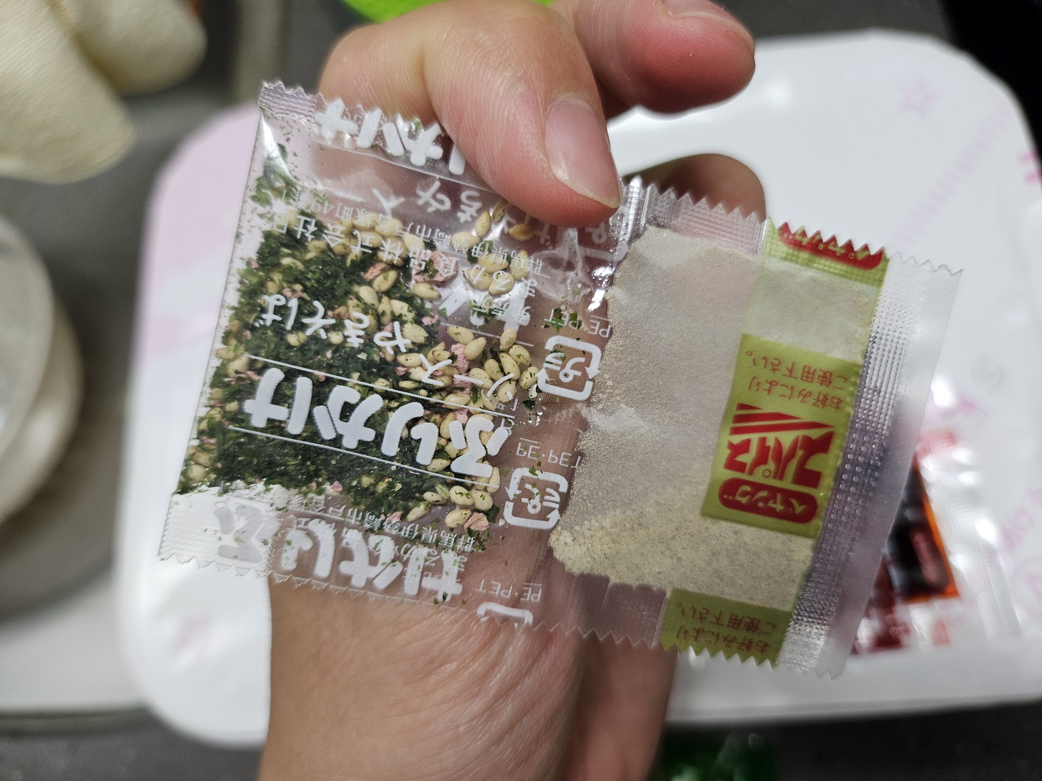 야끼소바 컵라면의 후레이크도 같이 넣어줍니다.