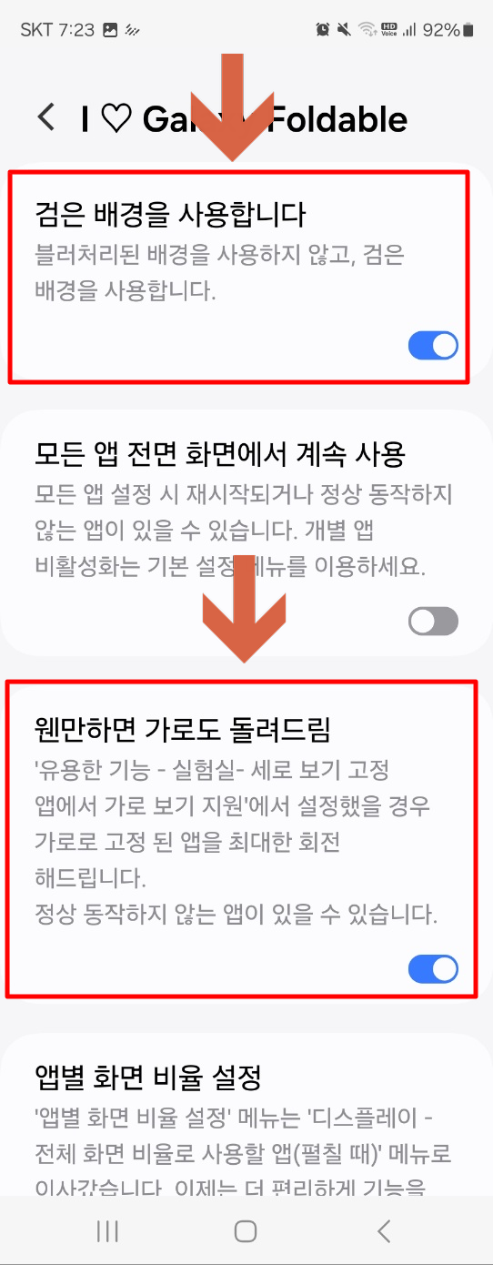 경우에 따라서 가로 모드로 폴드를 회전해서 쓸 수도 있고, 게임에서 나왔을 때는 원래 쓰던 세로 모드로 돌아가게 된다.