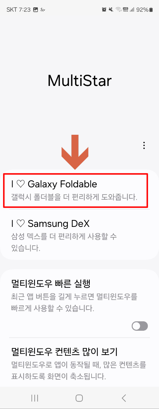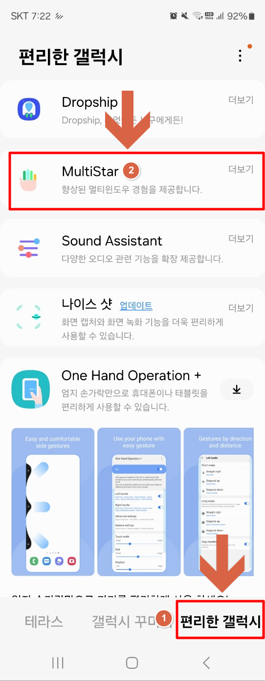 2. 아래쪽에 편리한 갤럭시 탭을 클릭 후 MultiStar 클릭