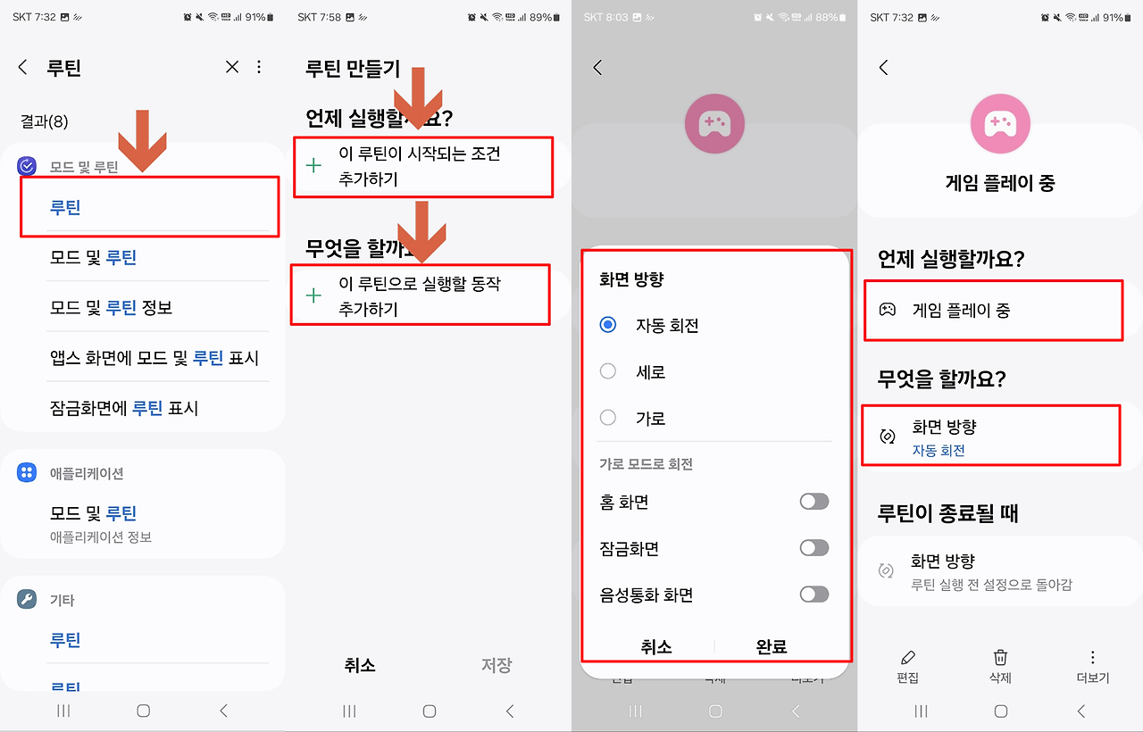 루틴을 설정하지 않으면 가로모드였다가 게임에서 나오면 원래 쓰던 세로모드로 돌아가지 않고 가로모드 상태로 유지된다.