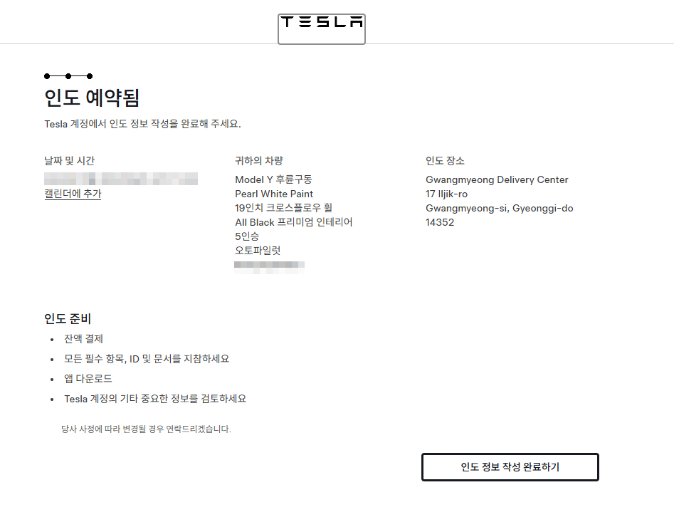 테슬라 구매는 처음이고, 딜러 없이 온라인으로 구매하는 것도 처음이었습니다. 2025-04-02일에 계약 주문 완료 후