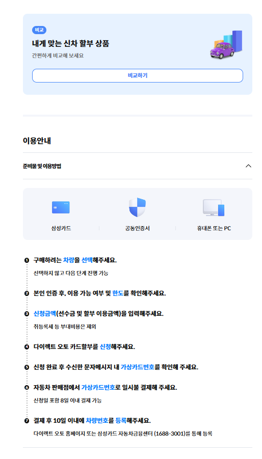 이상으로 삼성카드 다이렉트 오토할부를 신청하는 방법에 대한 글을 마치도록 하겠습니다. 많은 분들에게 도움이 되면 좋겠습니다.
