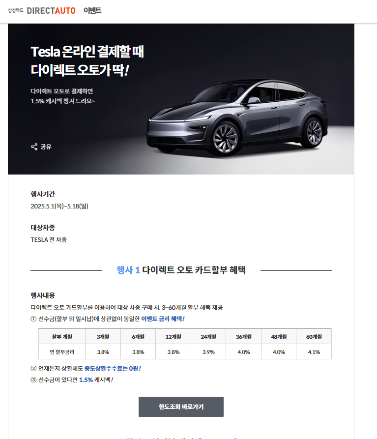 테슬라 모델 y 주니퍼 삼성카드 캐시백 프로모션 신청 방법 (0) | 2025.04.24 |