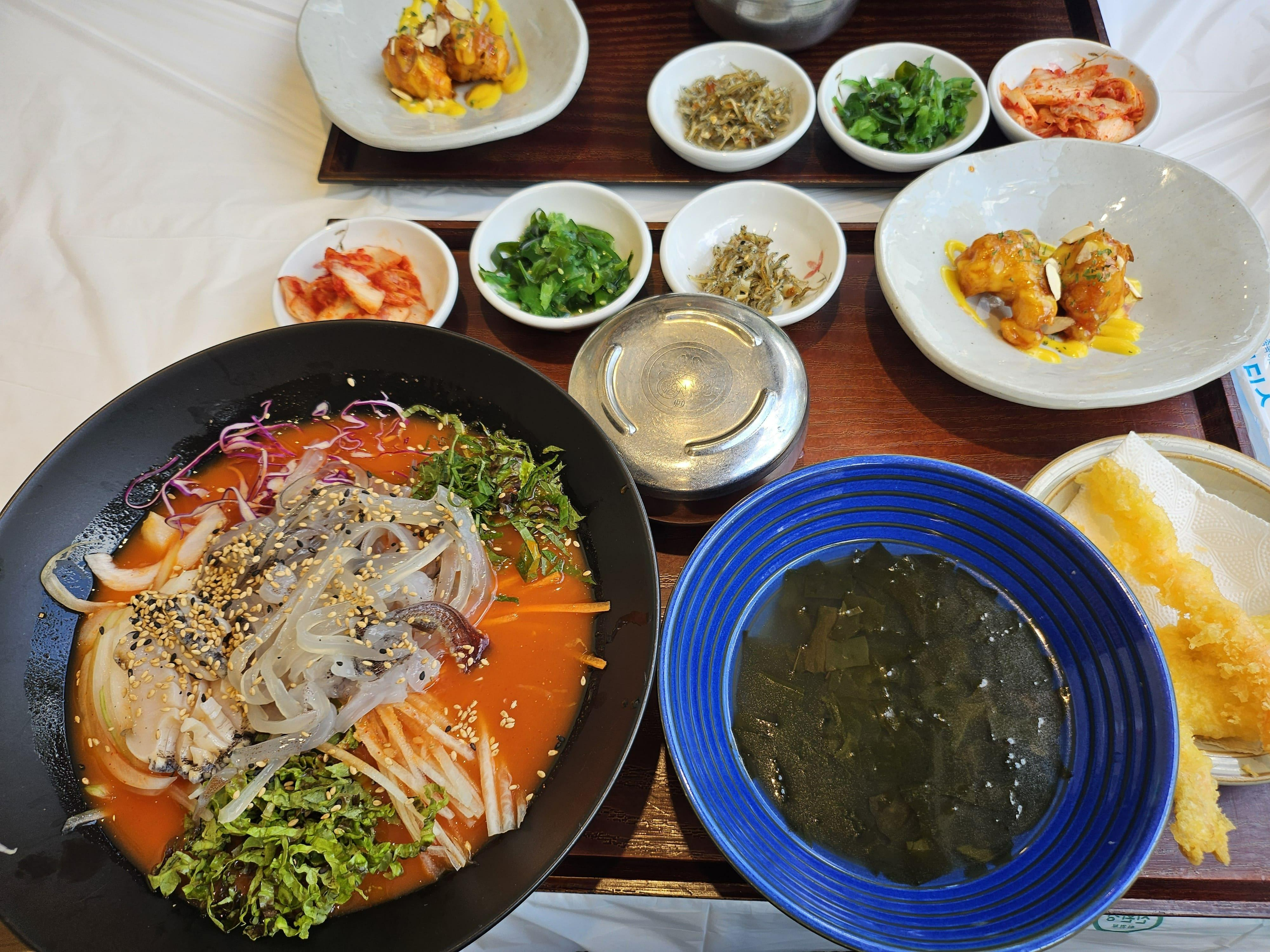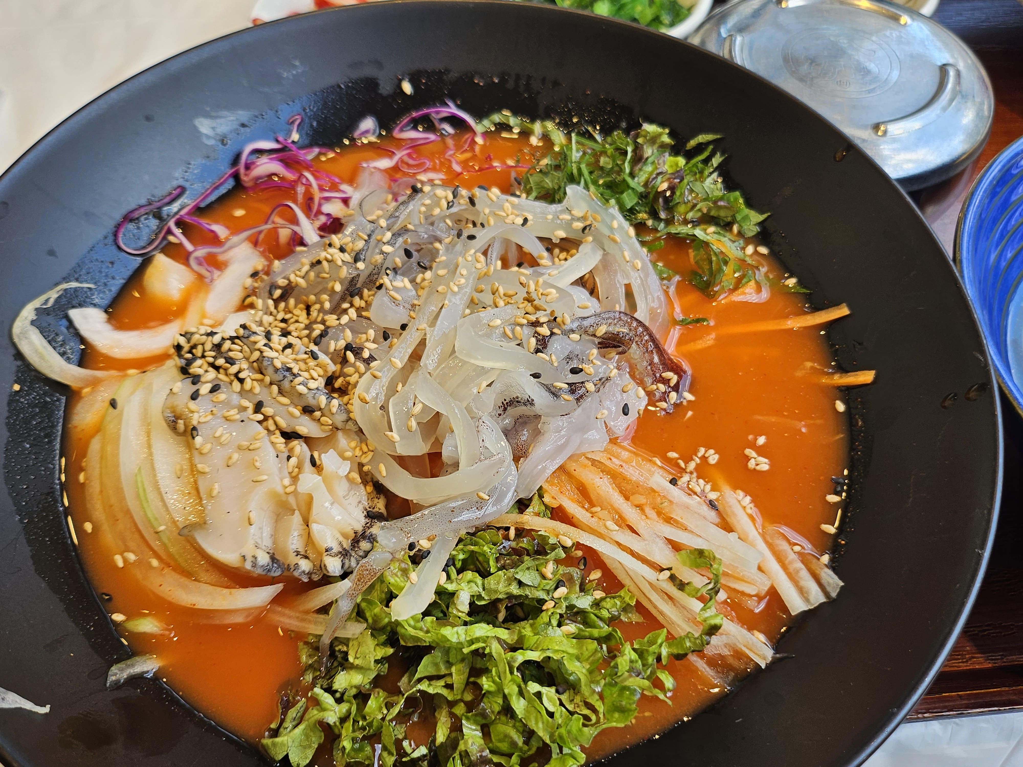 경포동해횟집에 방문하여, 점심특선 메뉴인 오징어 물회와 생선 물회를 주문했습니다. 오징어 물회가 생선물회보다는 금액이 조금 더 비싸지만, 오징어를 맛볼 수 있어서 주문했는데 맛도 괜찮았습니다. 바로 앞에 수조가 있어서, 수조에서 식재료를 주문과 동시에 잡아서 조리를 해주니 더욱 안심하고 맛있게 먹을 수 있었던 것 같습니다. 바로 앞에 차량을 주차하고, 식사 후에는 바닷가도 산책할 수 있어서, 강릉에 방문하셔서 물회를 생각하시는 분이 있으시다면, 좋은 선택이 될 것 같습니다. 오늘도 방문해주셔서 감사합니다. 좋은 하루 보내세요.
