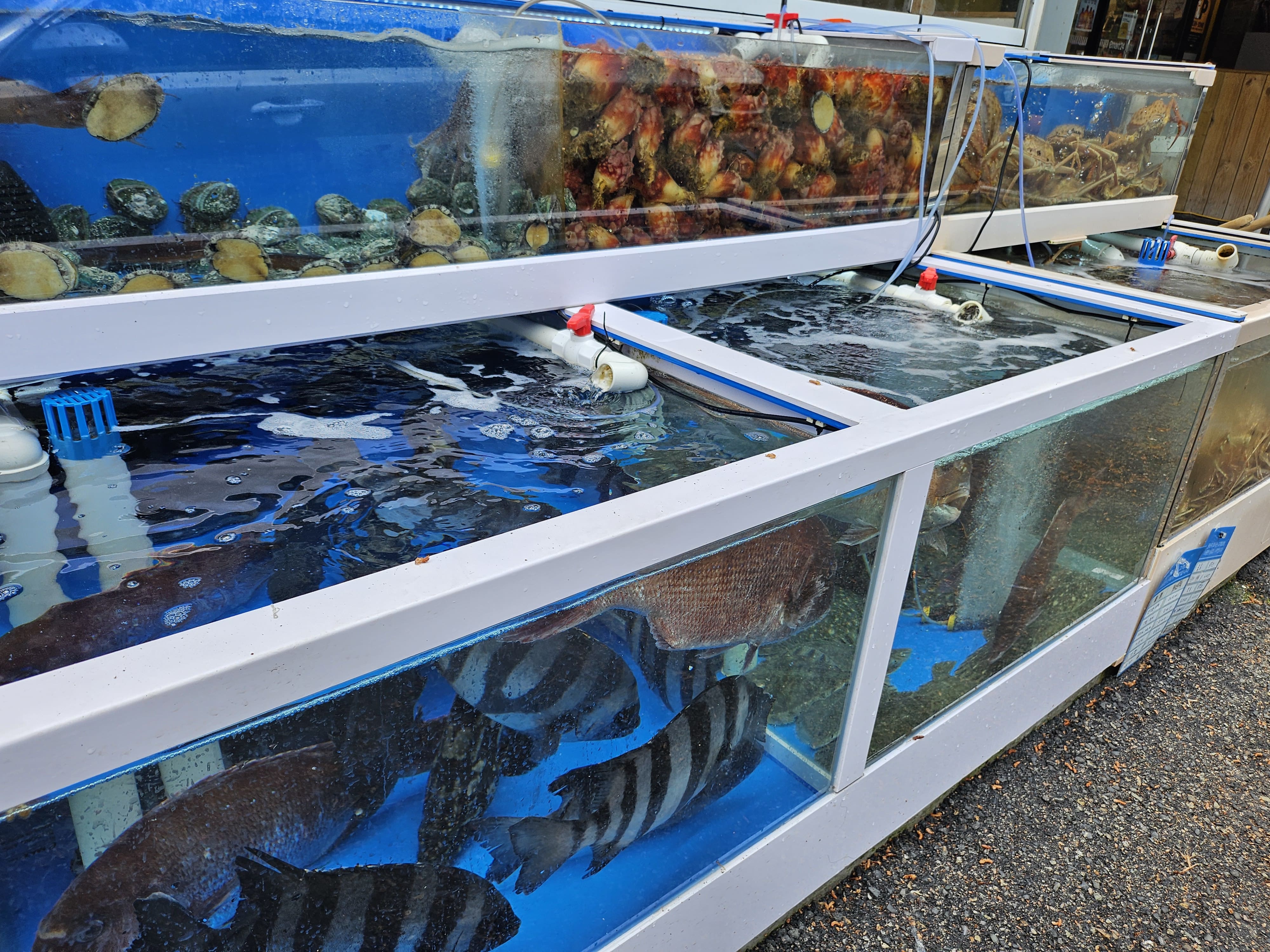 대게, 조개, 활어회 코스